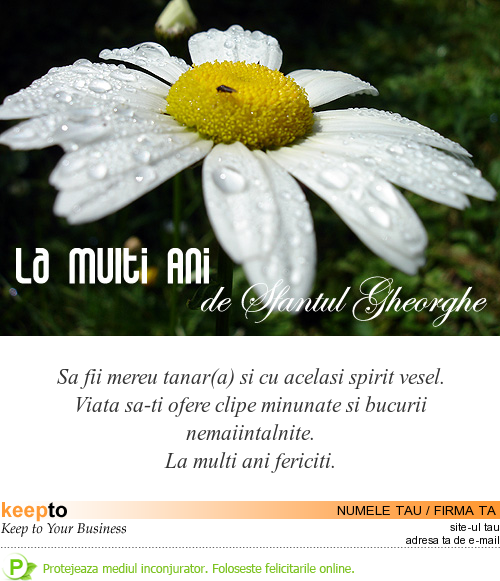 Cu toții vă apreciem și vă iubim foarte mult și de aceea vă felicităm și vă dorim sincer ca îngerii buni să vă aducă mai multă dragoste și mai mult noroc, sănătate puternică și dispoziție însorită! Ieri, 9 aprilie, autorul gheorghe săsărman a împlinit 72 de ani. In calendarul ortodox, pe 23 aprilie, crestinii il praznuiesc pe sfantul gheorghe si, cu aceasta ocazie, le uram la multi ani celor ce poarta numele.