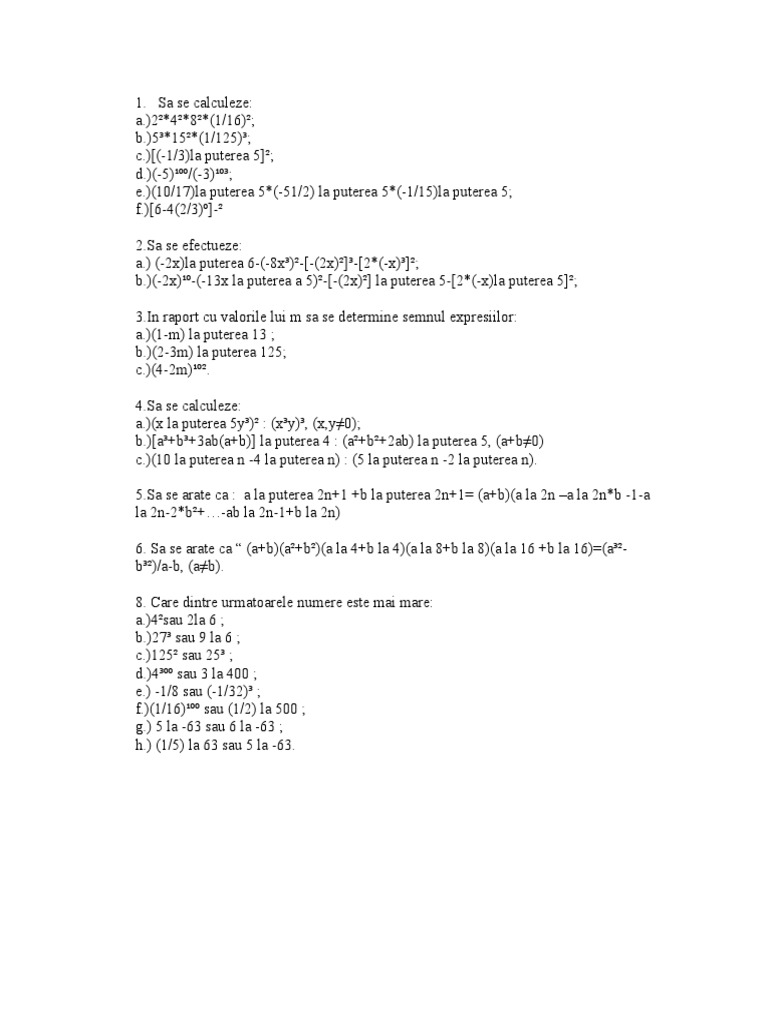 vizitati articolul complet aici : https://www.scribd.com/doc/153704653/Puteri-formule-matematica (1) statul are ca fundament unitatea poporului republicii moldova. Și pentru că am fost bună la matematică, sper să pot duce seria „and the winner is… până la puterea 10 sau mai sus! Proiectul cluj la puterea 10 are in vedere redefinirea spatiului public prin amplasarea de mobilier urban care sa confere clujenilor, dar si celor in trecere, o experienta unica si memorabila.