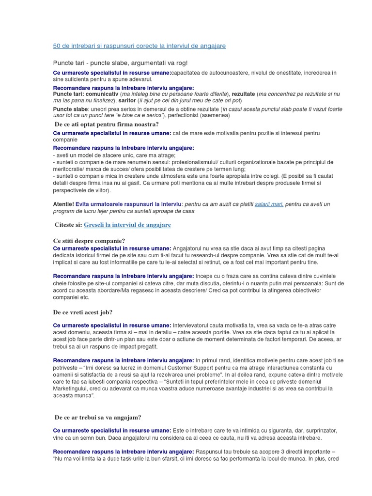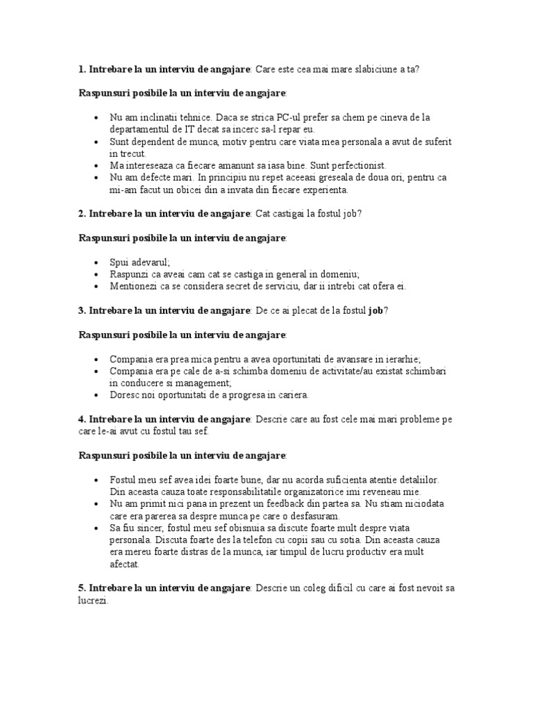 Intrebari Si Raspunsuri Interviu