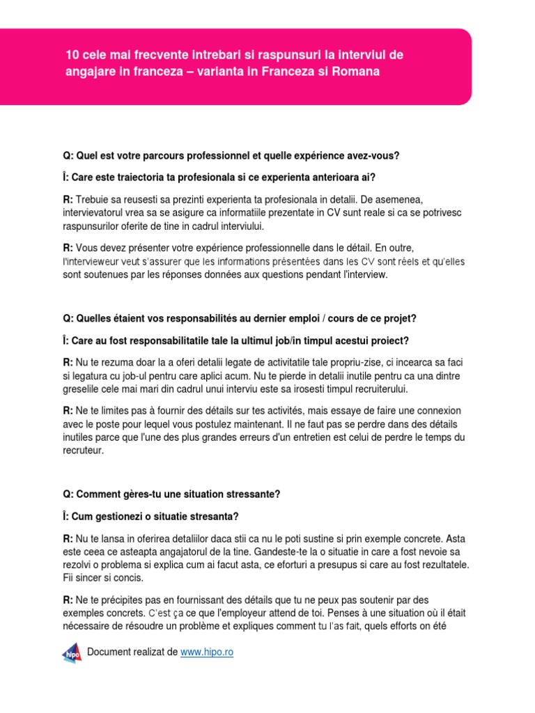 Cele mai frecvente 41 intrebari din timpul interviurilor si. Mai multe intrebari si raspunsuri : Aici gasiti raspunsuri la intrebarile primite de la cititori , va multumim !