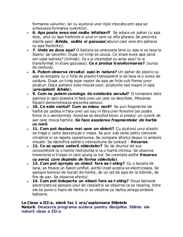 Predare intensivă în limbile engleză sau germană. Lucrarea abordeaza invatarea prin metoda investigatiei stiintifice, o modalitate dinamica indispensabila pentru studiul acestei discipline. Report test stiinte clasa 3.